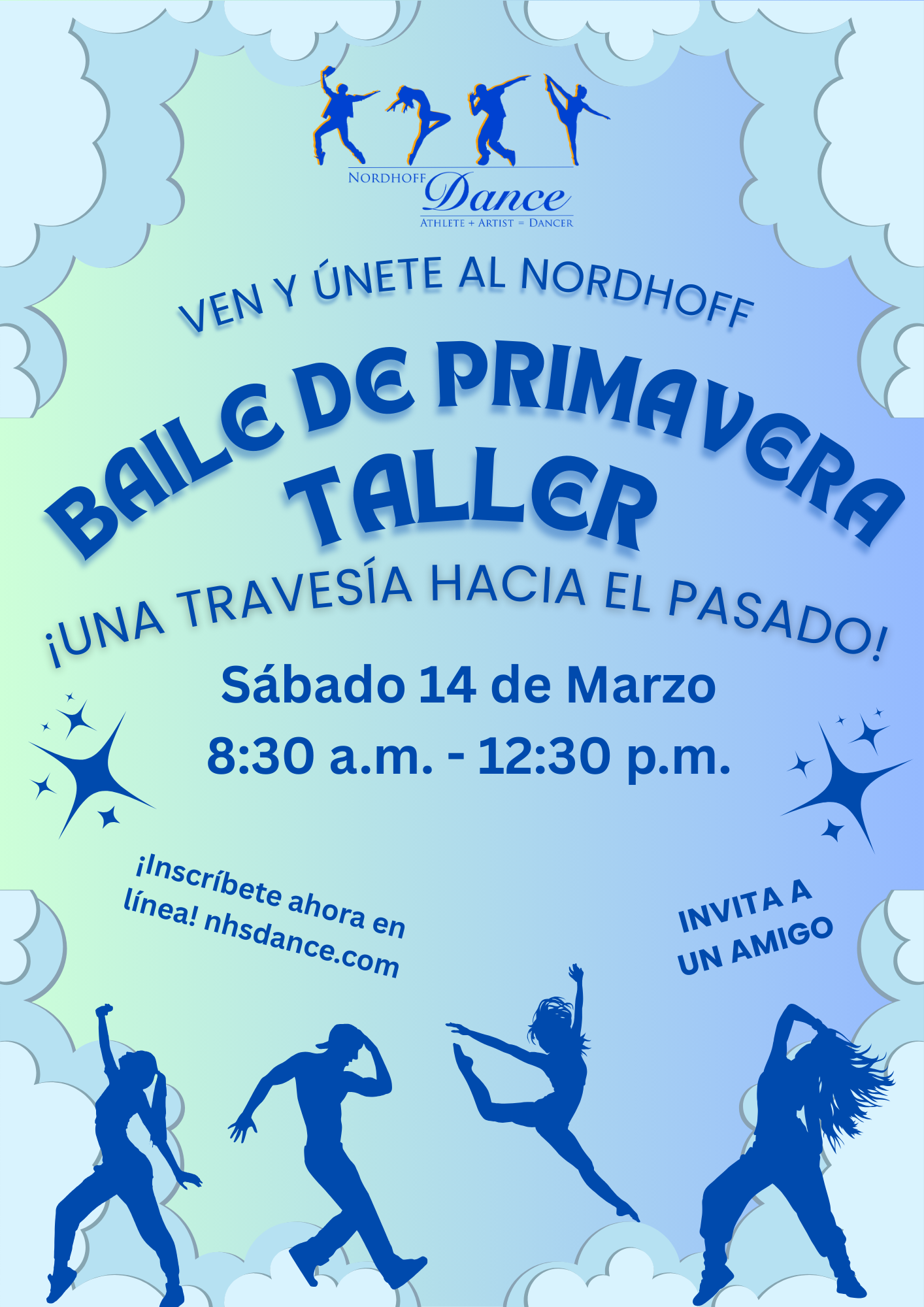 Cada otoño y primavera, los estudiantes de danza de Nordhoff ofrecen un taller de danza para los estudiantes de los grados K - 8 los sábados por la mañana. Esperamos que considere enviar a su estudiante de primaria y / o secundaria para que se una a nosotros.
